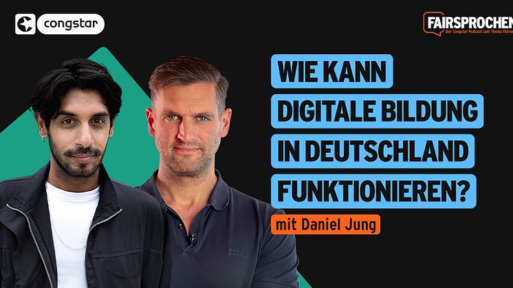Köln, 31.10.2023. In der neuen Folge des congstar Podcasts FAIRsprochen ist YouTube Creator und Unternehmer Daniel Jung zu Gast. Gemeinsam mit Gastgeber Juri Rother spricht Daniel darüber, warum künstliche Intelligenz Teil der digitalen Bildung sein sollte und wie sich das Bildungssystem dem technischen Fortschritt anpassen muss. Dabei gehen sie auch der Frage auf den Grund, ob und inwiefern digitale Bildung die Welt ein Stück weit fairer machen kann.