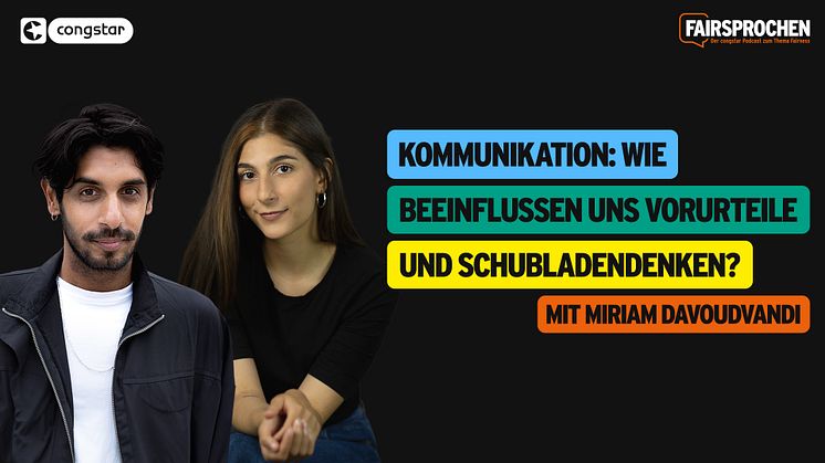 Köln, 14.11.2023. In der neuen Folge des congstar Podcasts FAIRsprochen ist Podcasterin und Journalistin Miriam Davoudvandi zu Gast. Die Moderatorin des beliebten Podcasts „Danke, gut. Der Podcast über Pop und Psyche“ spricht gemeinsam mit Gastgeber Juri Rother über Vorurteile gegenüber psychischen Erkrankungen und darüber, wie eigenes Schubladendenken überwunden werden kann.