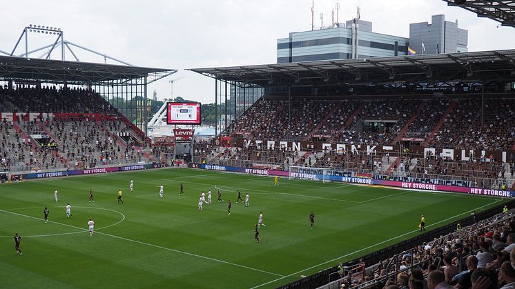 Köln, 12.08.2021. Der Kölner Mobilfunkanbieter congstar und der FC St. Pauli haben zum Saisonstart der 2. Bundesliga gemeinsam das neue Konzept und die neuen Botschaften für die Werbeflächen im Stadion am Millerntor präsentiert. Das Motto: „Zusammen sind wir mehr.“ Statt der klassischen Sponsorenwerbung stellen congstar und die Kiezkicker bereits seit 2018 immer wieder die gemeinsamen Werte der Partnerschaft – Vielfalt, Toleranz und Engagement – in den Fokus und kommunizieren diese transparent über verschiedene Werbeflächen am und im Stadion. Das Besondere in dieser Saison: Die Gastmannschaft und deren Fans werden direkt angesprochen. Das gilt auch für die Partie gegen den Hamburger SV am morgigen Freitag (13.08.), Anstoß ist um 18.30 Uhr.