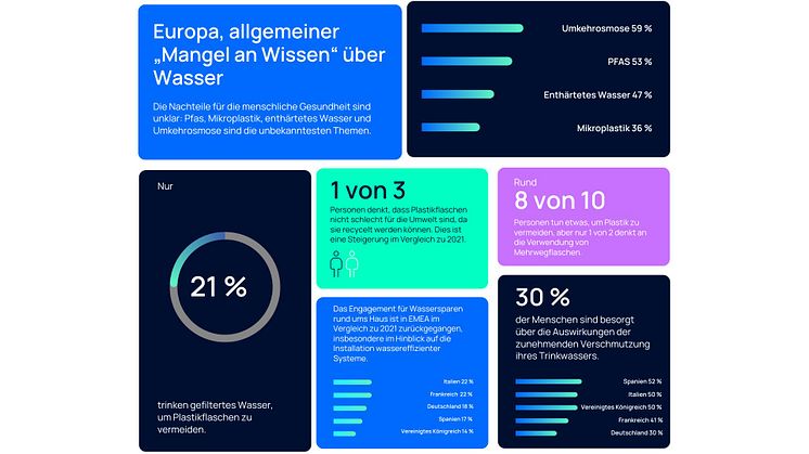 Die Studie enthüllt einen weit verbreiteten "Wissensmangel" beim Thema Wasser in ganz Europa, und es deutet sich an, dass sich diese Lücke weiter ausdehnt. Innerhalb der Umfrage wurden mehrere Schlüsselbereiche identifiziert, in denen das Bewusstsein besonders gering ausgeprägt ist.