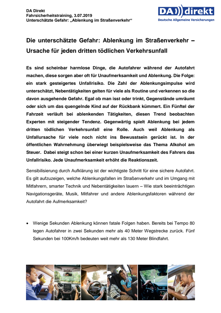 DA Direkt Expose: Unterschätzte Gefahr - Ablenkung im Straßenverkehr