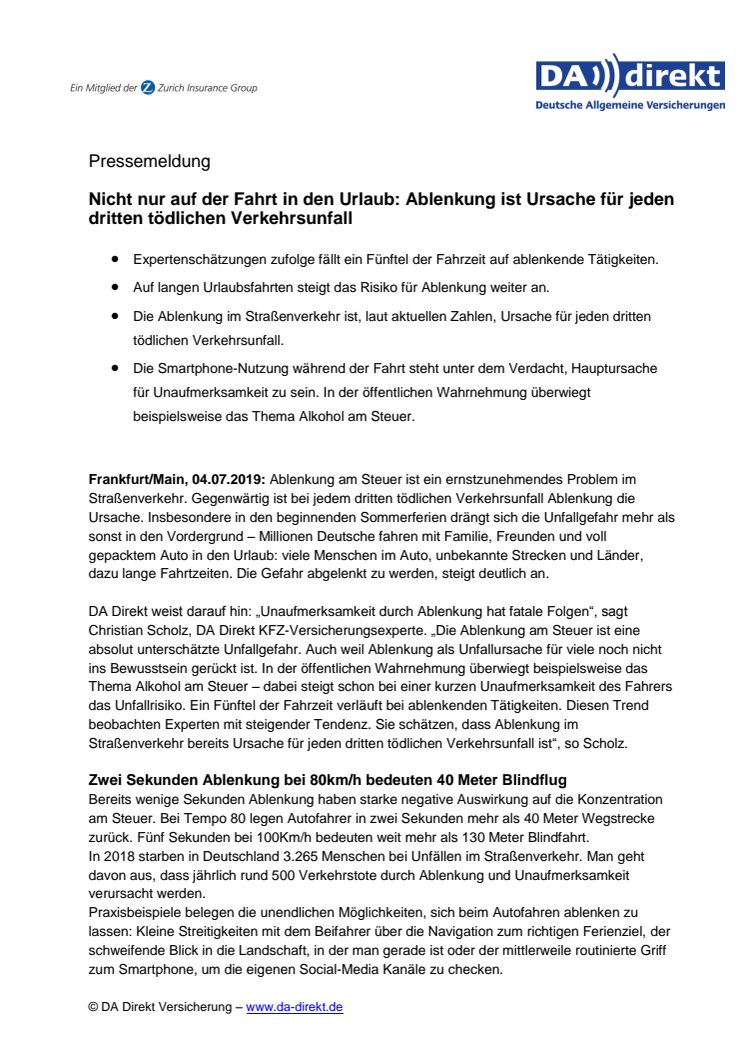 Ablenkung am Steuer ist ein ernstzunehmendes Problem. Gegenwärtig ist bei jedem dritten tödlichen Verkehrsunfall Ablenkung die Ursache. Insbesondere in den beginnenden Sommerferien drängt sich die Unfallgefahr mehr als sonst in den Vordergrund – Millionen Deutsche fahren mit Familie und Freunden in den Urlaub.Viele Menschen im Auto, unbekannte Strecken und Länder. Die Gefahr steigt deutlich an.