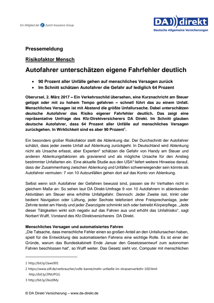 Risikofaktor Mensch: Autofahrer unterschätzen eigene Fahrfehler deutlich