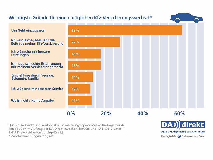 DA Direkt Umfrage: Gründe für Versicherungswechsel