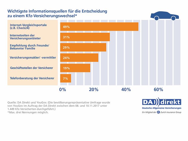 DA Direkt Umfrage: Informationsquellen für Kfz-Versicherungswechsel