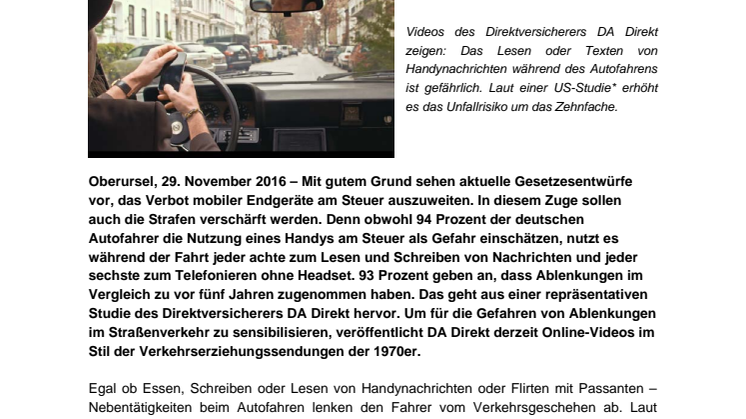 • DA Direkt sensibilisiert für Ablenkung im Straßenverkehr
