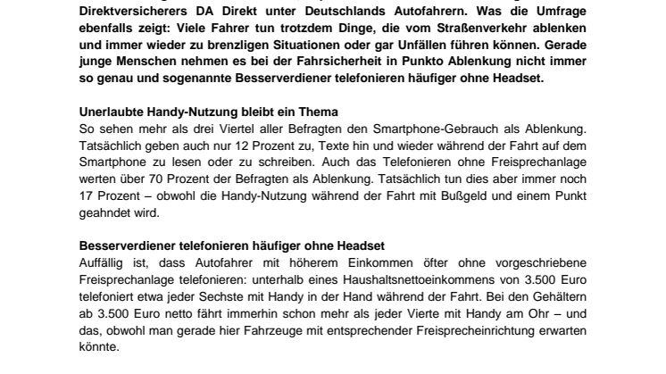 • DA Direkt Umfrage: Gründe für Ablenkung im Straßenverkehr