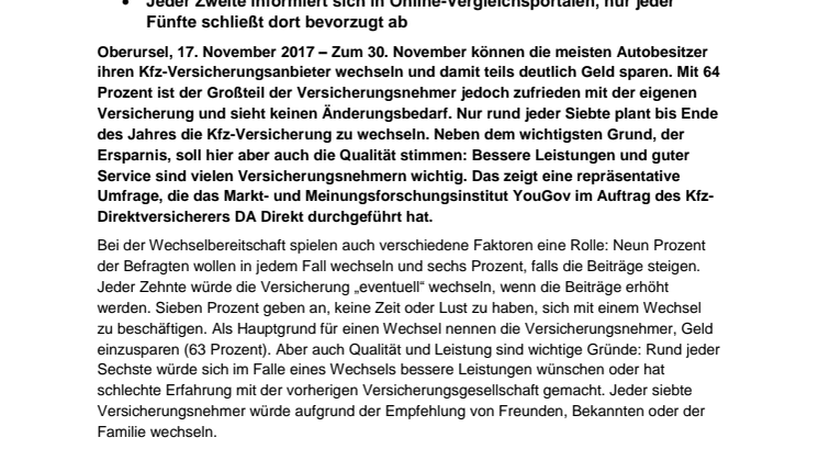 • DA Direkt Umfrage: Informationsquellen für Kfz-Versicherungswechsel