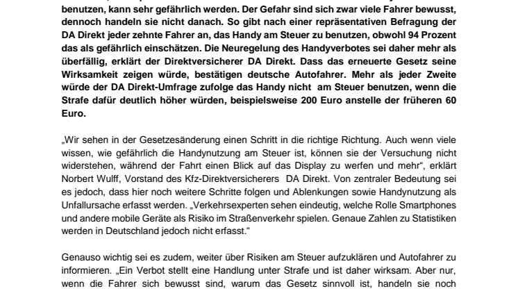 • Neuregelung des Handyverbots: Mehr als jeder zweite Autofahrer bestätigt Wirksamkeit