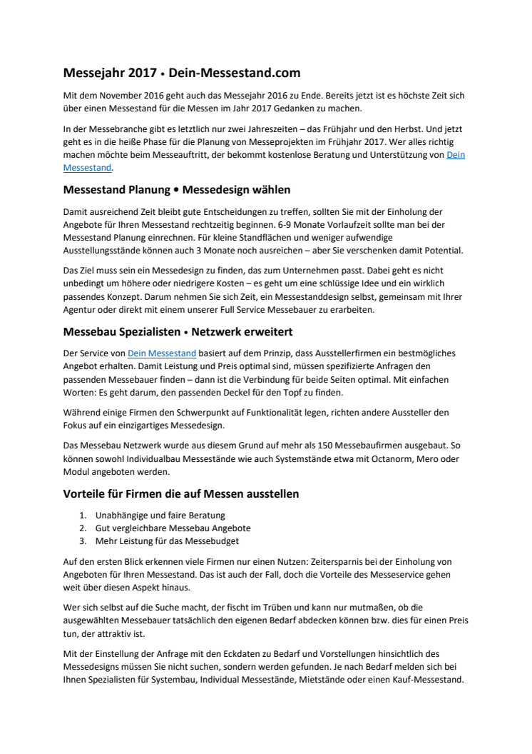 Mit dem November 2016 geht auch das Messejahr zu Ende. Bereits jetzt ist es jedoch höchste Zeit sich über einen Messestand für die Messen im Jahr 2017 Gedanken zu machen. Lassen Sie Ihre Messen in 2017 zu einem Erfolg werden!