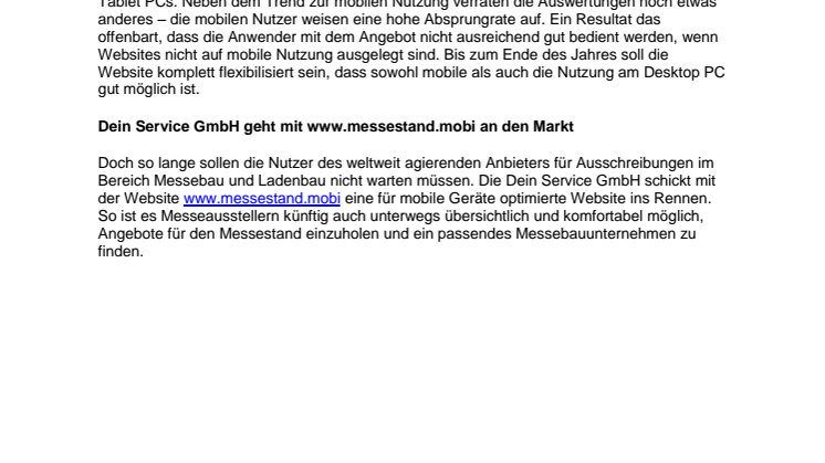 Dein Service GmbH geht mit www.messestand.mobi an den Markt