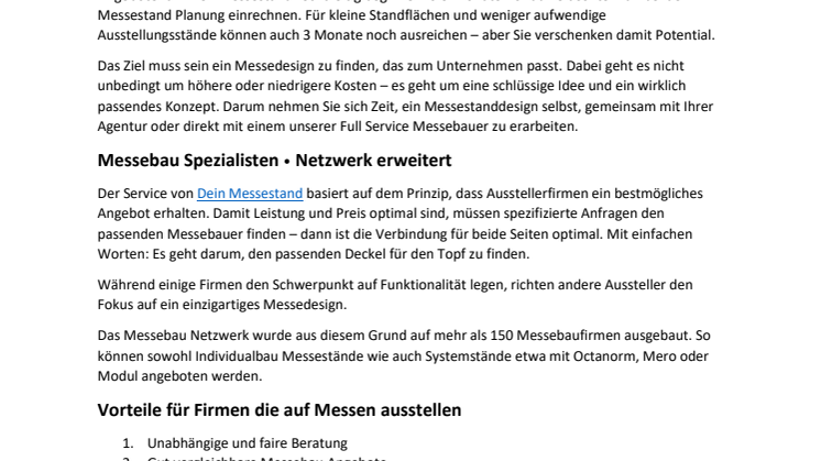 Wer sich selbst auf die Suche macht, der fischt im Trüben und kann nur mutmaßen, ob die ausgewählten Messebauer tatsächlich den eigenen Bedarf abdecken können bzw. dies für einen Preis tun, der attraktiv ist.