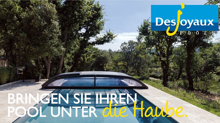 Sie haben sich bereits den Traum vom Pool erfüllt? Verlängern Sie mit einer Poolüberdachung die Badesaison! Bis zum 31.3.2024 gibt es bei allen teilnehmenden Desjoyaux-Exklusivhändlern eine Aktion für Poolüberdachungen. Sichern Sie sich jetzt eine Überdachung für Ihren Gartenpool zum Vorzugspreis.