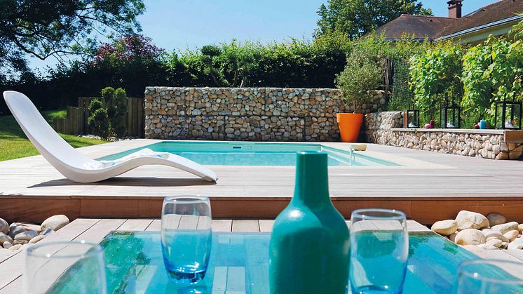 • POOL Man und aufblasbarer Flamingo mit blonder Perücke
