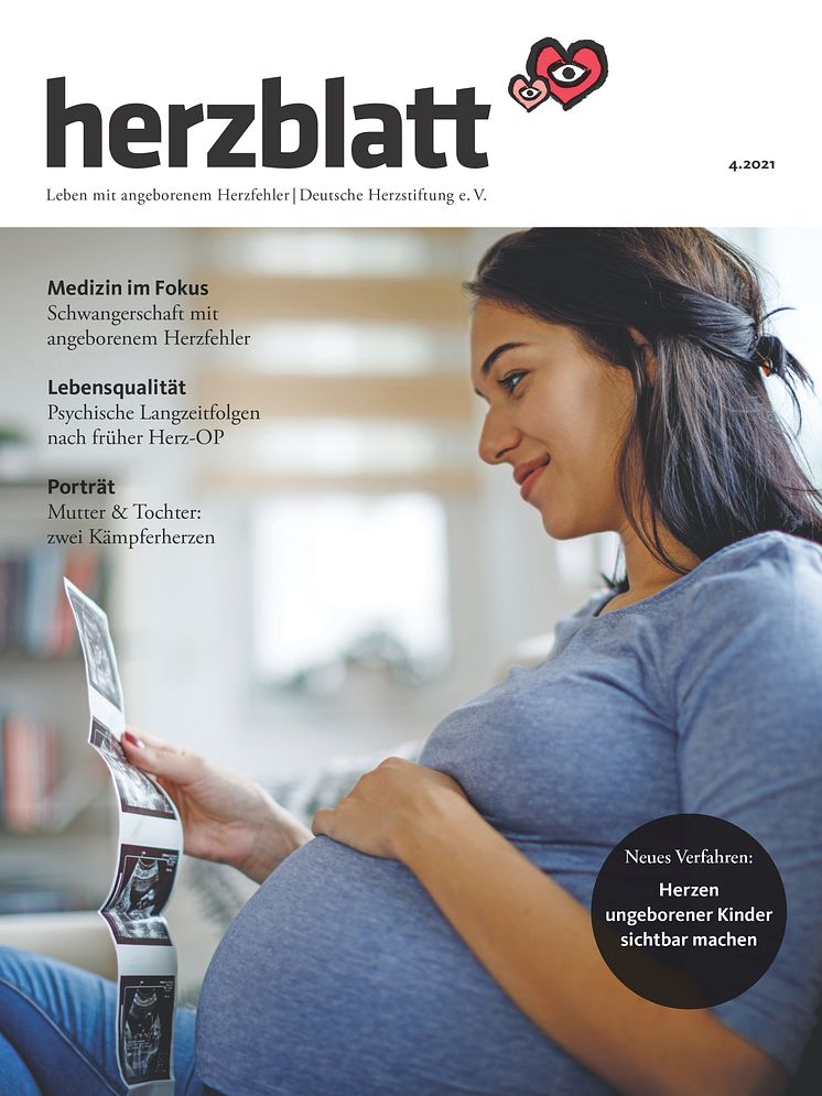 herzblatt ist die Zeitschrift der Kinderherzstiftung der Deutschen Herzstiftung. Die Ausgabe 4/2021 widmet sich dem Thema Schwangerschaft mit angeborenem Herzfehler.