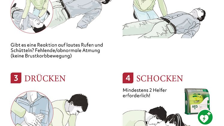 Prüfen, Rufen, Drücken, Schocken– unbedingt in dieser Reihenfolge.