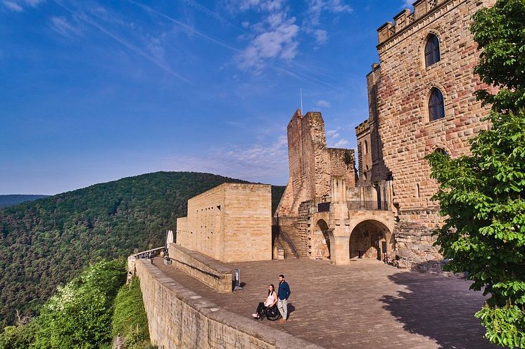 Neustadt an der Weinstraße_Neustadt_an_der_Weinstraße_Paar_mit_Rollstuhl_besucht_Hambacher_Schloss,_Deutsche_Weinstraße