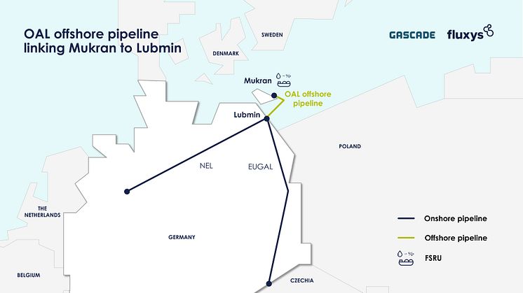 Die rund 50 Kilometer lange OAL verbindet das LNG-Terminal im Hafen Mukran auf der Insel Rügen mit Lubmin und ist ans dortige Fernleitungsnetz angeschlossen. Fluxys Deutschland und GASCADE sind bereits Miteigentümer der Nordeuropäischen Erdgasleitung (NEL) und der Europäischen Gas-Anbindungsleitung (EUGAL), die ihren Startpunkt ebenfalls in Lubmin bei Greifswald haben.
