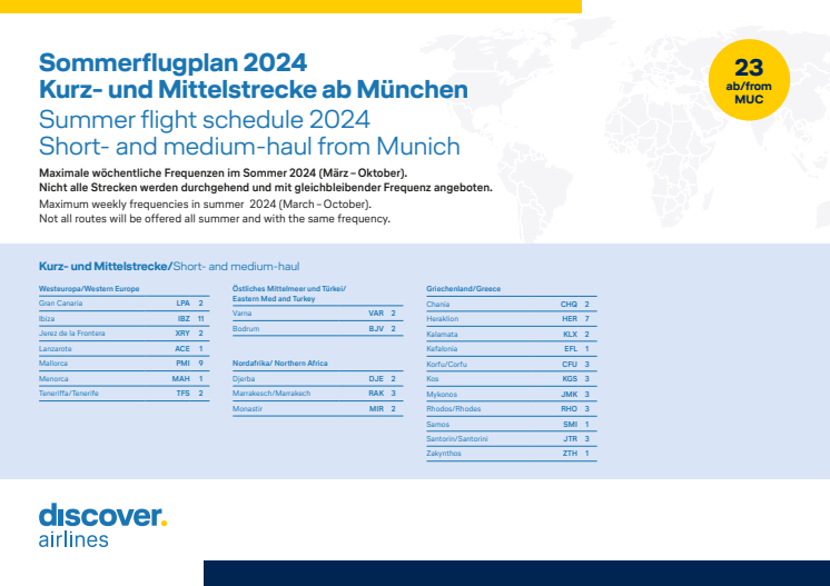 Sommerflugplan Discover Airlines ab MUC 2024
