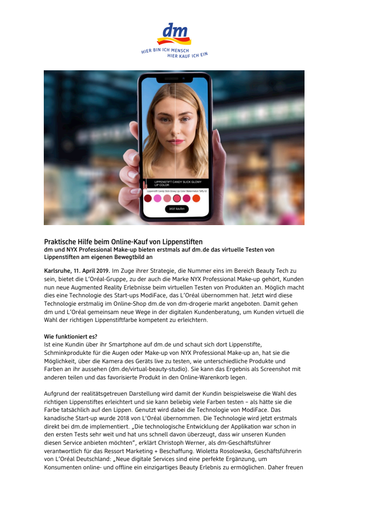 Im Zuge ihrer Strategie, die Nummer eins im Bereich Beauty Tech zu sein, bietet die L’Oréal-Gruppe, zu der auch die Marke NYX Professional Make-up gehört, Kunden nun neue Augmented Reality Erlebnisse beim virtuellen Testen von Produkten an. Möglich macht dies eine Technologie des Start-ups ModiFace, das L’Oréal übernommen hat.