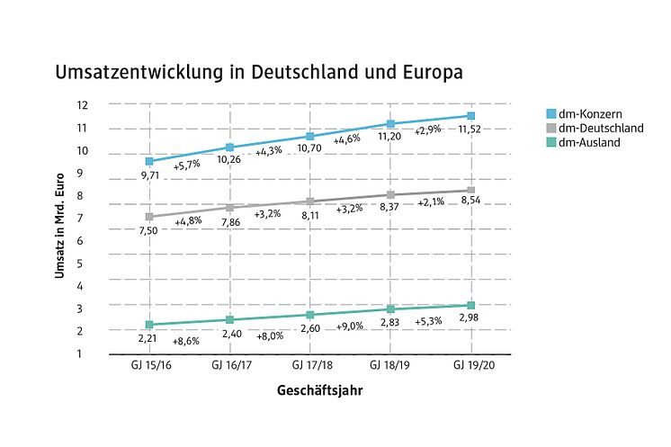 Umsatzentwicklung in Deutschland und Europa Geschäftsjahr 2019/20