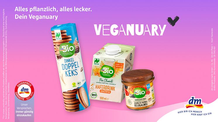 Um für den Start in den Veganuary bestens vorbereitet zu sein, stellt dmBio auf dm.de kostenlos Wochenpläne bereit. Diese wurden von Carina Wohlleben, einer auf vegane Ernährung spezialisierten Ernährungsberaterin, exklusiv für dm zusammengestellt. Zusätzlich wird die Aktion den gesamten Monat über auf den dm-Social-Media-Kanälen und insbesondere auf dem Instagram-Kanal von dmBio begleitet: Wissenswertes und Tipps rund um das Thema vegane Ernährung, Wochenpläne und die dazugehörige Einkaufsliste, Gewinnspiele und Rezepthacks laden zum Mitmachen ein.