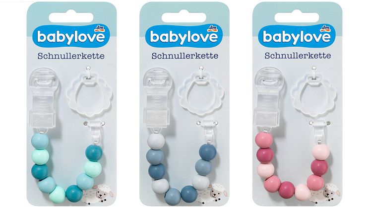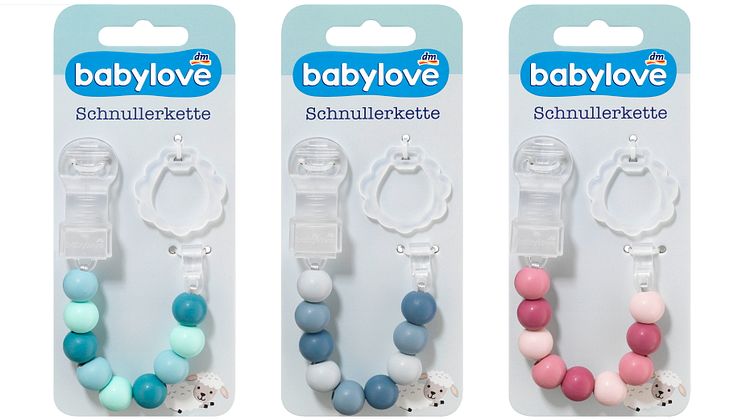 dm-drogerie markt ruft aus Gründen des vorbeugenden Verbraucherschutzes den Artikel babylove Schnullerkette zurück. Betroffen ist ausschließlich die Ware mit den Chargencodierungen PO 5460, PO 5537 sowie PO 5538. Diese Angabe ist leicht auf der Rückseite des Befestigungsclips, mit dem die Schnullerkette festgemacht wird, zu finden.