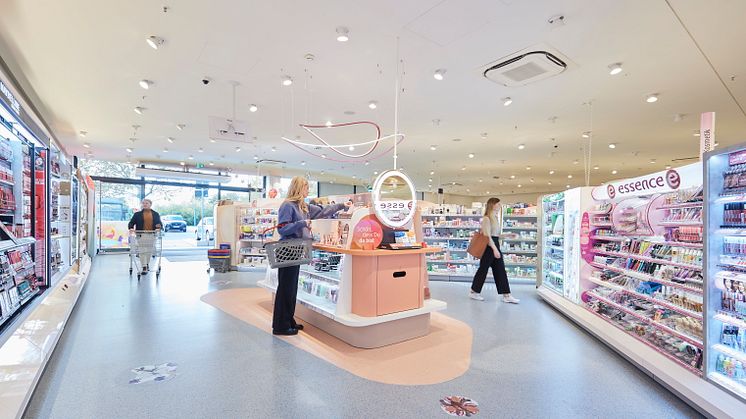 Zusätzlich zu der Spendenaktion können sich Kundinnen und Kunden über das neue Ladendesign freuen. Der dm-Markt erhält eine Kinderwelt, die neben einem Wickeltisch mit kostenlosen Windeln und Feuchttüchern von babylove, ebenfalls eine Spielecke mit Schaukelpferd und ein Stilmeter enthält. Dort finden Eltern alles, was sie und ihr Kind benötigen. Auch im Bereich Schönheit gibt es Neuerungen: die 16-Meter-lange Schönheitstheke wird nun durch eine Beauty-Insel ergänzt, welche die neuesten Duft- und Beautytrends präsentiert.