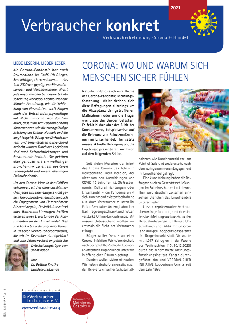 • Erste repräsentative Bürger-Befragung zur Corona-Situation im Handel: VERBRAUCHER INITIATIVE und dm versorgen politische Entscheidungsträger mit Stimmungsbildern der Menschen