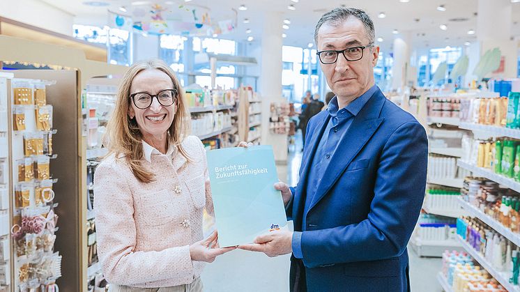 • Kerstin Erbe überreicht Cem Özdemir neuen dm-Nachhaltigkeitsbericht