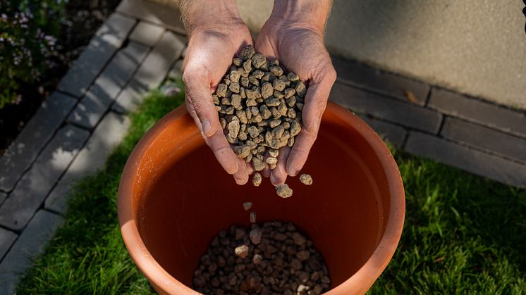 Profitipp: Für die Kräuter ein Gefäß mit Abflussloch und eine 2 - 3 Zentimeter hohe Drainageschicht aus Floragard Pflanzgranulat verwenden. Dadurch wird Staunässe vermieden, die schädliche Wurzelfäule fördern kann.