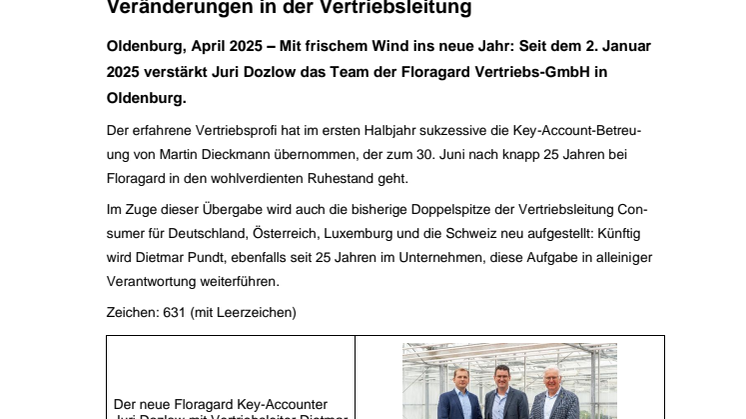 Der erfahrene Vertriebsprofi hat im ersten Halbjahr sukzessive die Key-Account-Betreuung von Martin Dieckmann übernommen, der zum 30. Juni nach knapp 25 Jahren bei Floragard in den wohlverdienten Ruhestand geht.