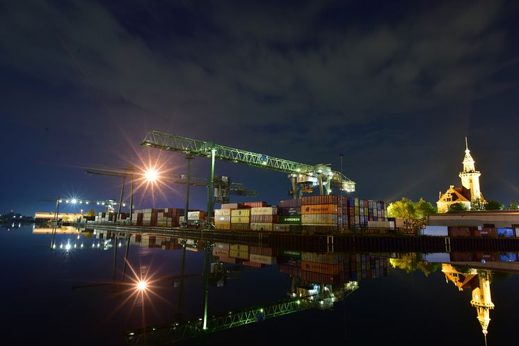 Auch der Hafen und das alte Hafenamt sind gelb für das Pokalfinale