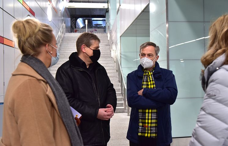 NRW-Verkehrsministerin Ina Brandes (links) mit Arnulf Rybicki (Baudezernent der Stadt Dortmund, mitte) und Hubert Jung (Verkehrsvorstand DSW21).