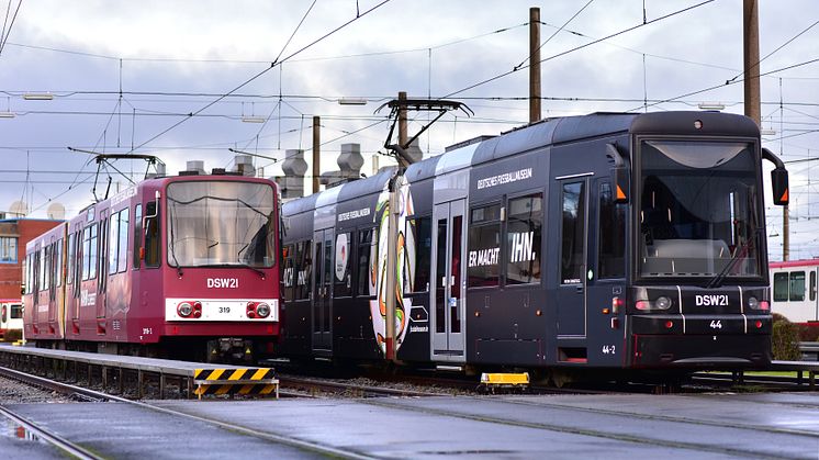 Sichtbar wird die inhaltliche Kooperation auch über zwei Motiv-Stadtbahnen, die das Deutsche Fußballmuseum in (fast) jede Ecke der Stadt Dortmund bringen.