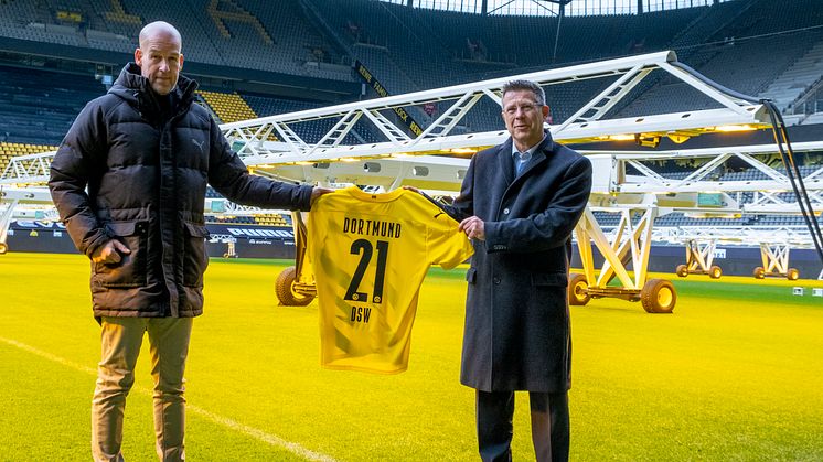 Dortmund ist eben anders, und die beiden Partner BVB und 21 sind es auch. Die Unternehmen der 21 machen in Dortmund Infrastruktur. Das geschieht größtenteils unsichtbar. Beim Strom sogar unter der Erde. Mit viel Vorausplanung, mit Gebäuden, mit Mobilität und Logistik, großen Stadtentwicklungsprojekten wie dem Phoenix-See und Investitionen, die viele Dortmunder bisweilen als selbstverständlich betrachten. In 2021, dem Markenjahr der Unternehmen mit der 21, machen sich diese unsichtbaren Riesen nun bemerkbar. An vielen Stellen – wie auf jenem Trikot, das BVB-Geschäftsführer Carsten Cramer dem Vorstandsvorsitzenden der DSW21, Guntram Pehlke, unlängst überreichte – wird eine „21“ aufleuchten oder auftauchen, um zu zeigen: Hier überall sind wir. Für Euch. Für Dortmund. Für den BVB!