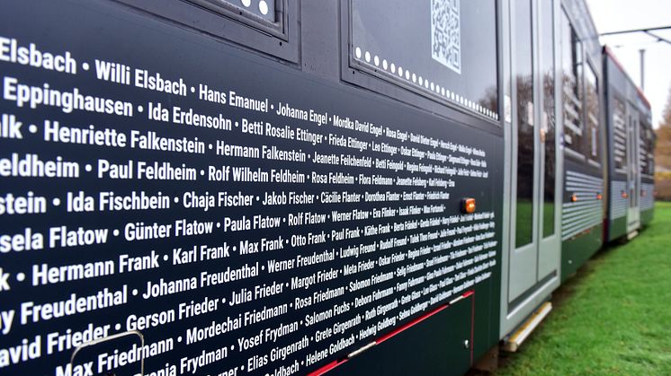 „Die offiziellen Gedenktage erreichen häufig nur eine bestimmte Zielgruppe. Gedenksteine wiederum sind an Orte gebunden, die man kennen muss. Diese Bahn trägt die Erinnerung in den Alltag und schafft mit dem Blick auf die Dortmunder Geschichte eine Anknüpfung an die Lebenswelt der Menschen. Sie kann Bürgerinnen und Bürgern den Anstoß geben, sich mit der Geschichte zu beschäftigen und sie eröffnet die Möglichkeit weiterführende Informationen über den historischen Kontext und die deportierten Jüdinnen und Juden zu erhalten“, sagt Harald Kraus. Zu diesem Zweck ist ein QR-Code an mehreren Stellen im Design integriert, der auf die Internetseite www.deportationen-dortmund.de führt. Der Arbeitsdirektor von DSW21 betont, wie wichtig ihm besonders dieser Aspekt ist. „Wir erleben derzeit auf vielen Ebenen, dass die Geschichte des Holocaust verzerrt und verfälscht wird. Zum Beispiel auf Demonstrationen oder im Internet. Dagegen hilft nur eine Auseinandersetzung, die anhand von ganz konkreten Beispielen die Dimension dieses schrecklichen Verbrechens vermittelt. Dazu möchten wir einen Beitrag leisten.“