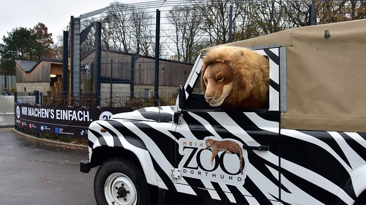 Den ersten Blick wird man wohl am 21.12. – beim kostenlosen 21er-Tag (Abschluss des Markenjahres) – auf die Löwen werfen können. Aber alles hat seine Zeit, auch der Einzug der Löwen und für die nächsten Jahre ist mit der ersten Hauptpartnerschaft für ein Tierhaus hier auch der richtige Grundstein gelegt. Mut für Neues, Mut für starke Partnerschaften – 21 – wir machen´s einfach. dortMUT bleibt dabei unübersehbar: An den Sichtfenstern der Außengehege, an den Gebäudeeingängen und Türen sowie an den Scheiben ist die Partnerschaft angebracht. Diese Präsenz als Hauptpartner ist Teil der Sichtbarkeits-Strategie von 21 im Markenjahr und natürlich bleibend darüber hinaus.