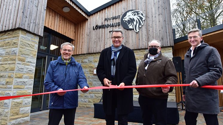 Das neue Löwenhaus, eröffnet vom Oberbürgermeister Thomas Westphal sowie der Zoodirektion und den DSW21- Vorständen Hubert Jung und Jörg Jacoby, wird die neue Heimat eines Löwenjungen aus den Niederlanden und zweier Löwenmädels aus Erfurt. Ziel ist eine neue Löwenzucht im Schutz des Zoos sowie ein weiterer Anziehungspunkt für die mehr als eine halbe Millionen Gäste des Zoos. Zoos erhalten die stolzen Tiere, erlauben neue Erkenntnis über die Eigentliche Großkatze und sind nachhaltig – weil weltweite Anreisen in die ursprünglichen Löwenreviere damit für viele Interessierte entfallen. Zudem wird hier im Zoo ein Löwe bis zu stolze 20 Jahre alt, während in der Wildnis oft schon nach vier oder fünf Jahren die Rivalen nach seinem Leben trachten.