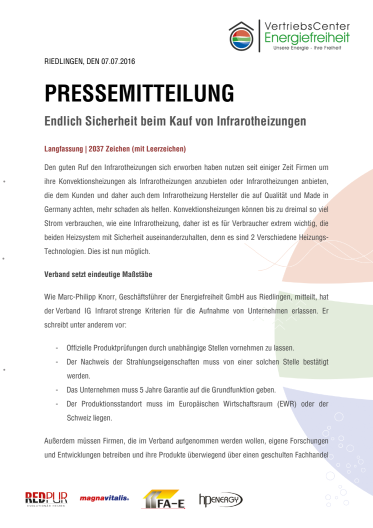 Den guten Ruf den Infrarotheizungen sich erworben haben nutzen seit einiger Zeit Firmen um ihre Konvektionsheizungen als Infrarotheizungen anzubieten oder Infrarotheizungen anbieten, die dem Kunden und daher auch dem Infrarotheizung Hersteller die auf Qualität und Made in Germany achten, mehr schaden als helfen.
