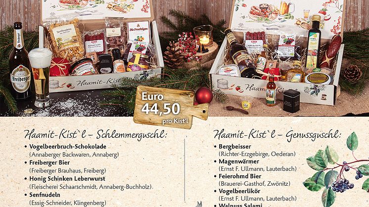 Beide können zum Preis von 44,50 EUR unter www.erzgebirge-tourismus.de/haamit-kistl oder telefonisch unter +49 (0) 3504 614 877 bestellt werden. (Versand zzgl. 6,99 EUR)