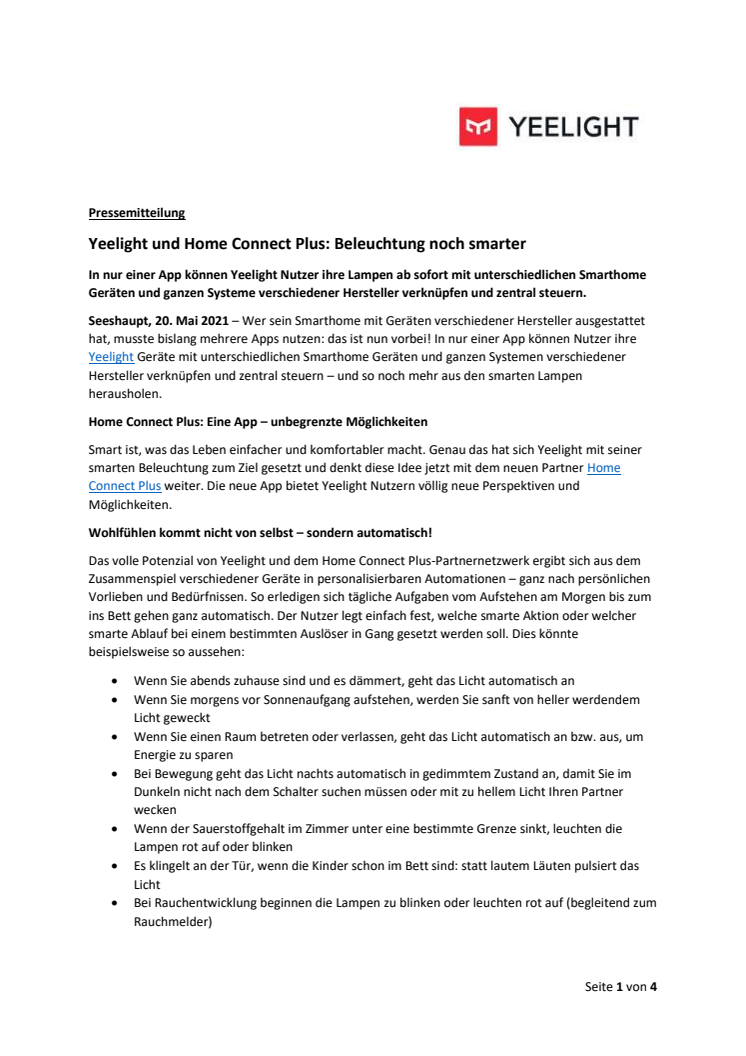 Yeelight und Home Connect Plus: Beleuchtung noch smarter - Mai 2021
