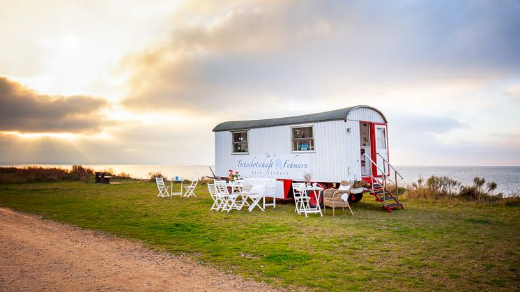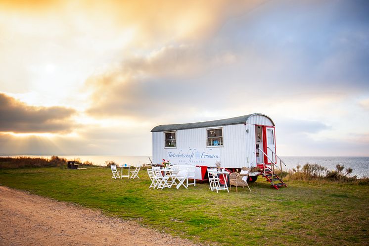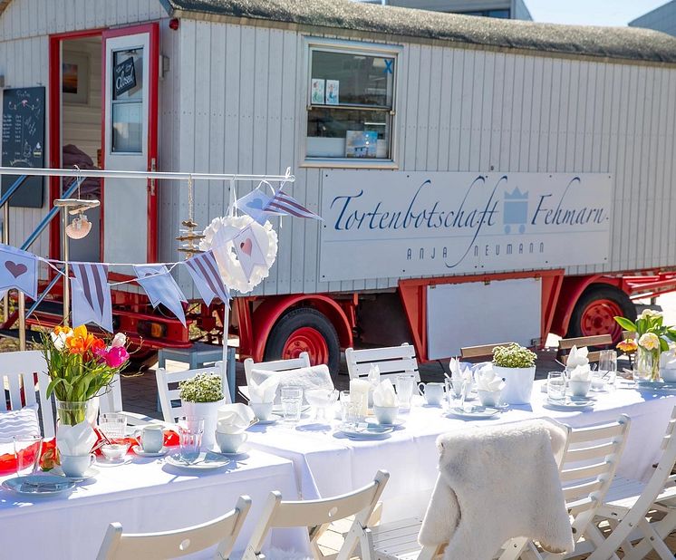 Seit Frühjahr 2019 steht Anja Neumann von Ostern bis Anfang Oktober mit ihrem Zirkuswagen am Yachthafen in Burgtiefe und verkauft dort Kaffee, Kuchen und Torten sowie typisch fehmarnsches Gebäck. Anfangs nur am Wochenende, da sie damals noch eine Festanstellung in Hamburg hatte. „Eine sieben Tage Woche war für mich normal. Von Montag bis Freitag war ich in Hamburg, von Freitag- bis Sonntagabend auf Fehmarn“, reflektiert Anja Neumann die Zeit, in der ihre langjährige Freundin Jutta Schewe sie unterstützt und begleitet hat. „Es war schon richtig viel Arbeit, aber immer mit Freude und dem Glauben an die Tortenbotschaft – was sich gelohnt hat, wie man heute sieht.“
