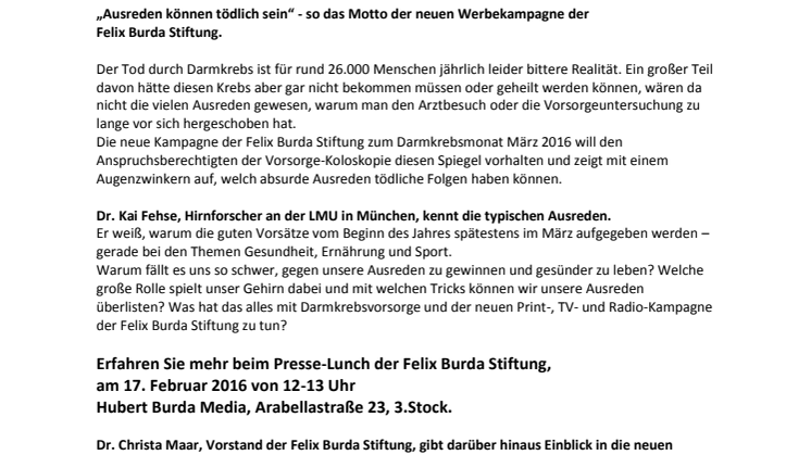 /// Einladung: Presse-Roundtable zum Darmkrebsmonat März 2016 ///