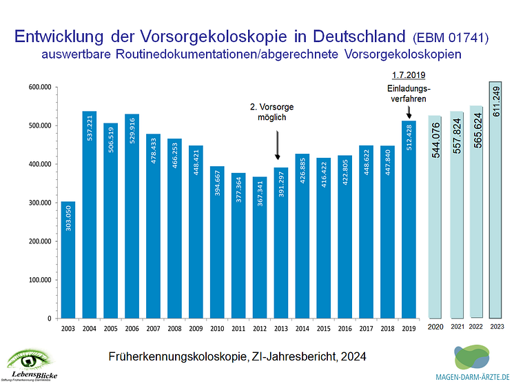 Entwicklung der Vorsorgekoloskopie in Deutschland 2003-2023