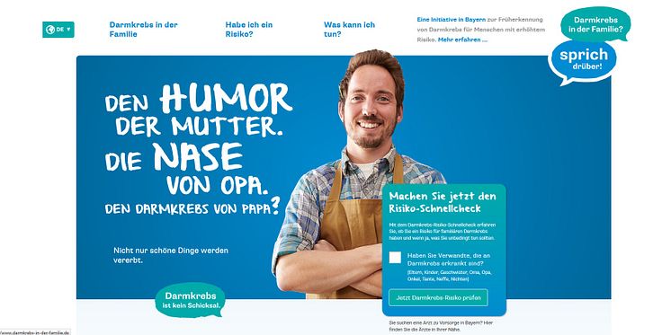 FARKOR: Screenshot der Projektwebsite www.darmkrebs-in-der-familie.de