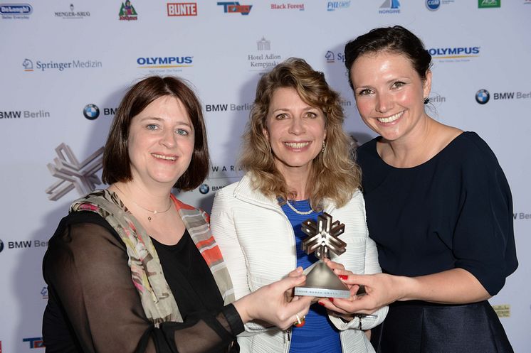 Preisträger der Kategorie "Beste Präventionsidee": Dr. Ulrike Bussas, Prof. Dr. Cornelia Ulrich und Clare Abbenhardt (v.l.n.r.) vom Nationalen Centrum für Tumorerkrankungen Heidelberg und Deutschem Krebsforschungszentrum (DKFZ).