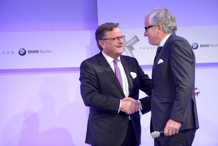 Dr. med. Frank UIrich Montgomery und Preisträger Prof. Dr. Wolff Schmiegel / Direktor Ruhr Universität Bochum bei der Felix Burda Award Gala 2014 im Hotel Adlon in Berlin am 06.04.2014