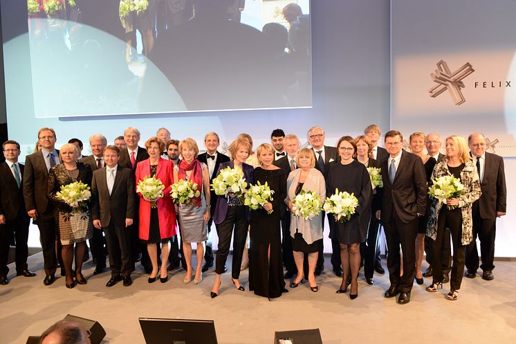Abschlussbild mit allen Gewinnern und Laudatoren sowie Dr. Christa Maar bei der Felix Burda Award Gala 2014 im Hotel Adlon in Berlin am 06.04.2014