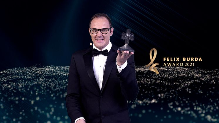 Felix Burda Award 2021: Vince Ebert mit Trophäe